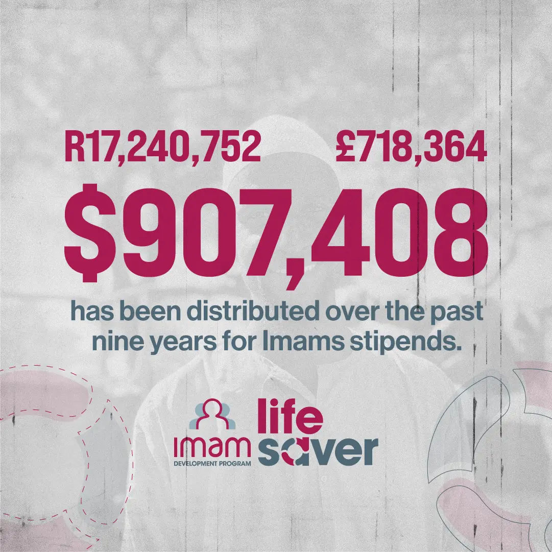 The Imam Development Program provides Imams from South Africa, Lesotho, Swaziland, Zimbabwe, Malawi, Zambia, Tanzania, Namibia, Botswana, and Mozambique with a comprehensive package. The most important part of the package is the lifesaving monthly assistance of $105 as a top-up to their salaries. This aims to provide vital support by bridging the gap in their income.